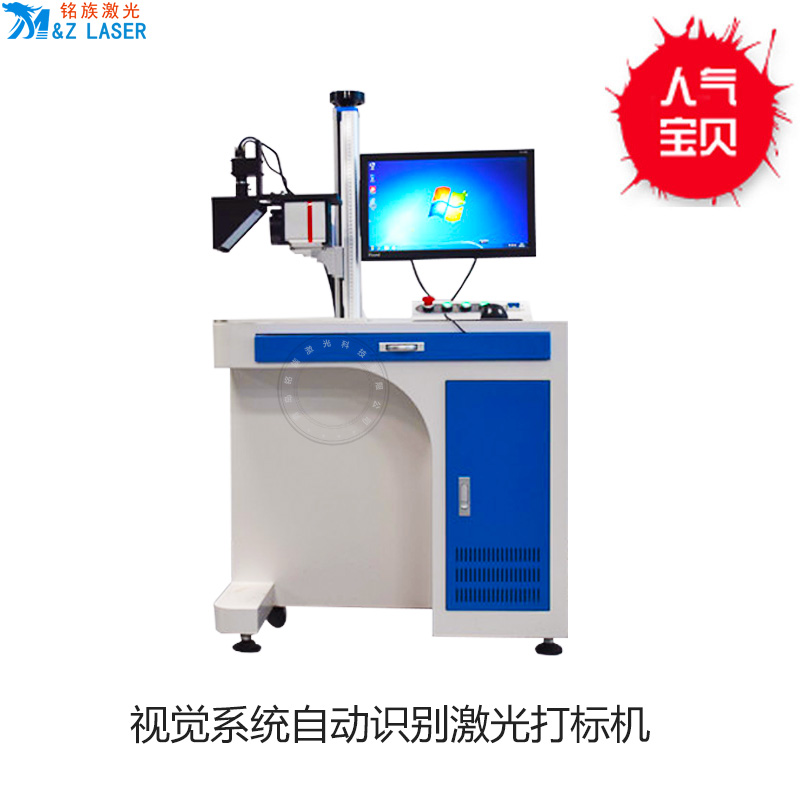 CCD視覺系統(攝像定位)激光打標機-主要針對于批量不規則打標加工中夾具設計制造困難導致的供料難、定位差、速度慢的問題,CCD攝像打標通過采用外置攝像頭實時拍攝、抓取特征點的方式予以解決。本系統隨意供料、精確定位、打標,極大的提升了打標效率。通過視覺系統來輔助激光打標,可使激光加工的優勢得到更全面的發揮,不但可以解決打標的精度問題,同時具有高適應性,無須再使用夾具,降低成本,同時提高了產品線的自動化流程,減少了人工參與,提升了系統效率。一般的激光打標機,在打標加工的時候,所加工零件必須處于一個固定的位置,并且加工過程中不能晃動,加工的圖案才能加工到產品指定位置上,這些都是我們對普通激光打標機加工工藝的常識。